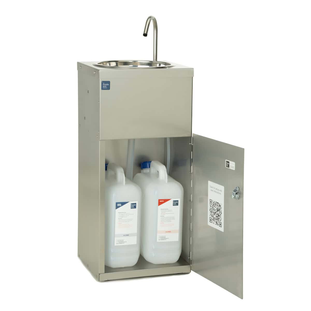 A shorter sink, ideal for children with easy to empty water containers with a capacity of 10 litres. The Odyssey 100 Junior Mobile Sink Unit offers users a hands-free hand wash. It works via a foot pump and delivers on average 130ml of cold water at each use.